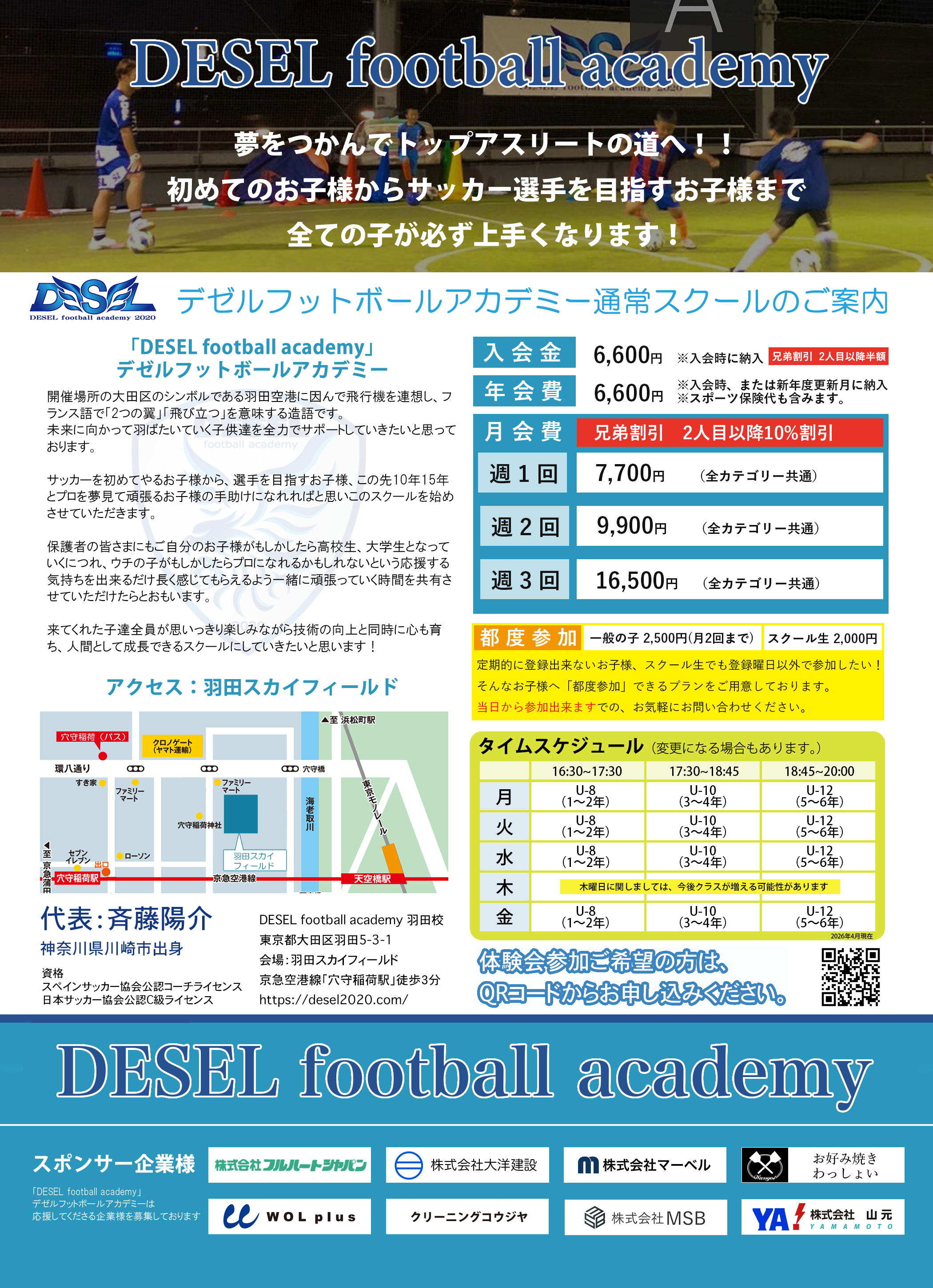 大田区のサッカースクールデゼルから、夢と未来に向かって羽ばたく子ども達を全力でサポートしていきます。